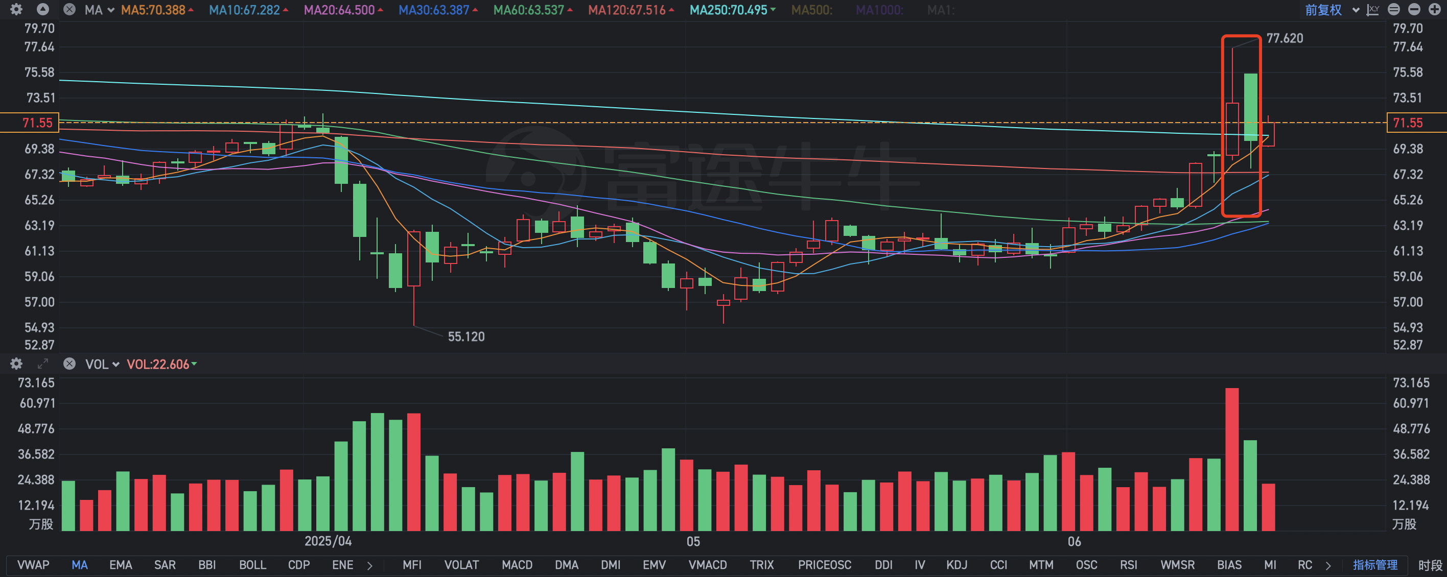 (以色列突袭伊朗后的两个交易日,油价出现巨幅震荡。图片来源:WTI原油主连日K线截图)